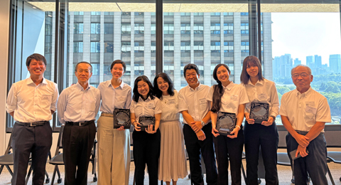 (三井物産での奨学金授与式にて、左から2人目が筆者)