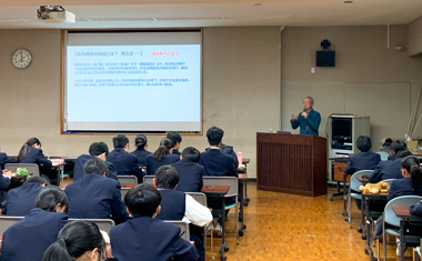 私自身の会社生活を振り返り、特にイタリア、中国での生活やビジネスについて紹介しながら、生徒たちの海外志向を高められればと思い、面白おかしいエピソードをいくつか紹介した。